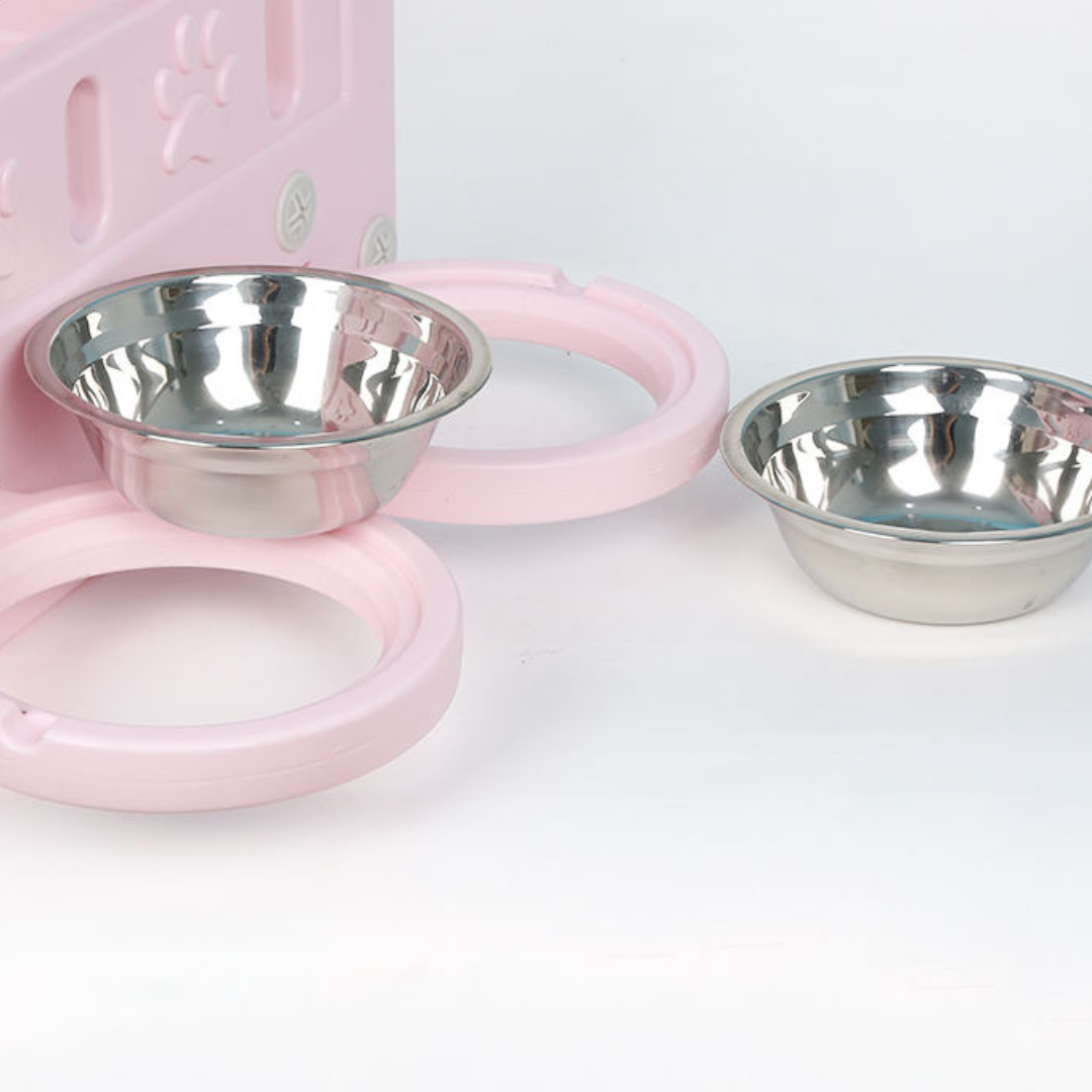 This pet bed is designed specifically for small pets, providing a cozy and comfortable resting place. Its compact size makes it ideal for placement beside your bed, allowing your pet to stay close while you sleep. The bed features two attached bowls, perfect for convenient feeding and hydration without needing extra space. Crafted with pet comfort and practicality in mind, this bed combines rest and nourishment in one accessible spot.